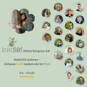 Herzlich Willkommen zum Krautfidelkongress 4.0 mit dem Schwerpunkt „Natürlich wohnen – Zuhause Kraft tanken wie im Wald“. Erfahre, wie du durch einfach umsetzbare Anregungen auch in der dunkleren Jahreszeit gesund, energiegeladen und verbunden mit der Natur bleibst.